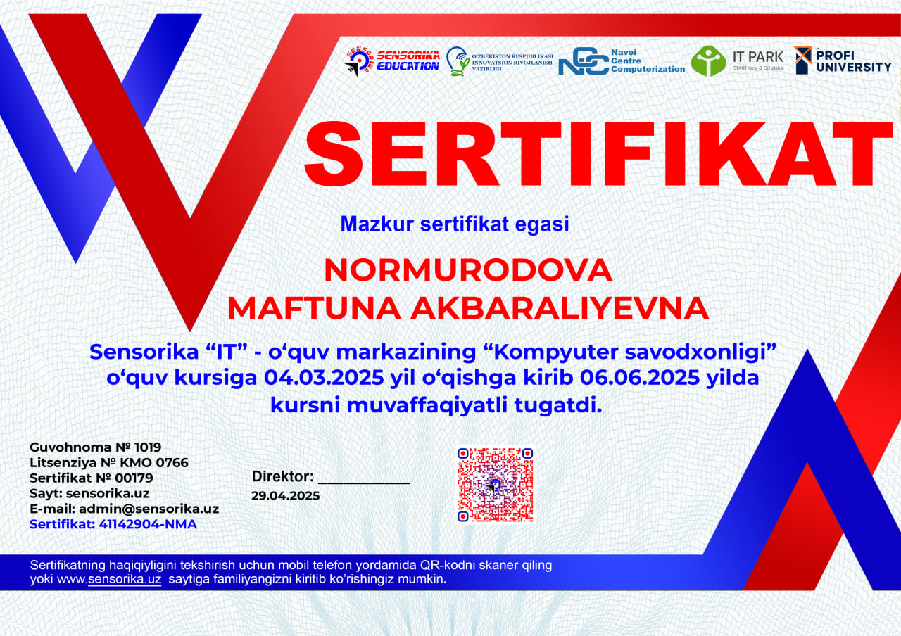 Barcha o'quvchilar / Kompyuter savodxonligi